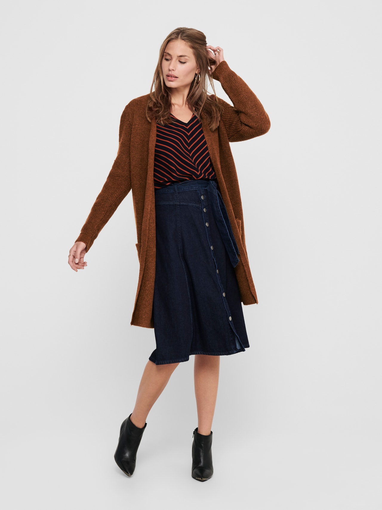 Burnt Orange Textured Knit Mid Length Cardigan Filly Flair