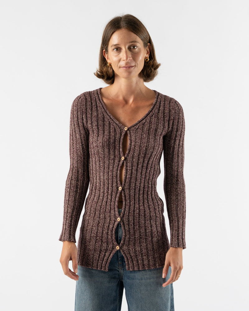 Baserange Loulou Cardigan In Burgundy Melange Curated At Jake And Jones
