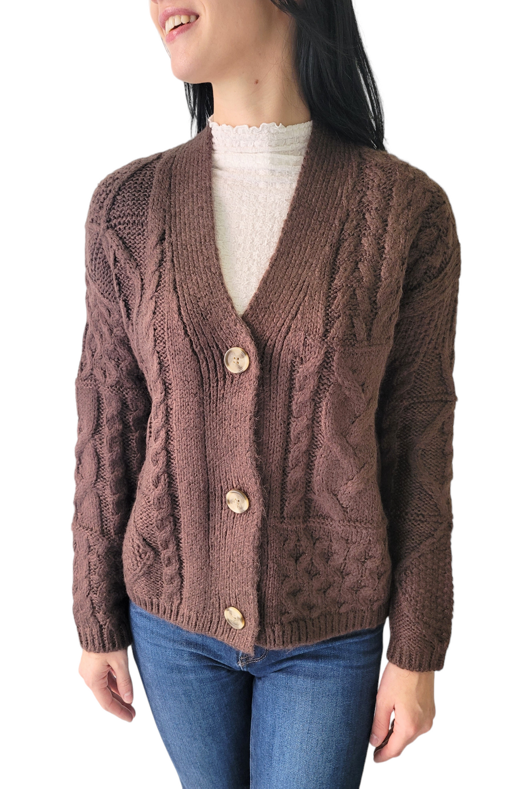 Dex Chocolate Brown Cable Knit Cardigan Luscious Boutique